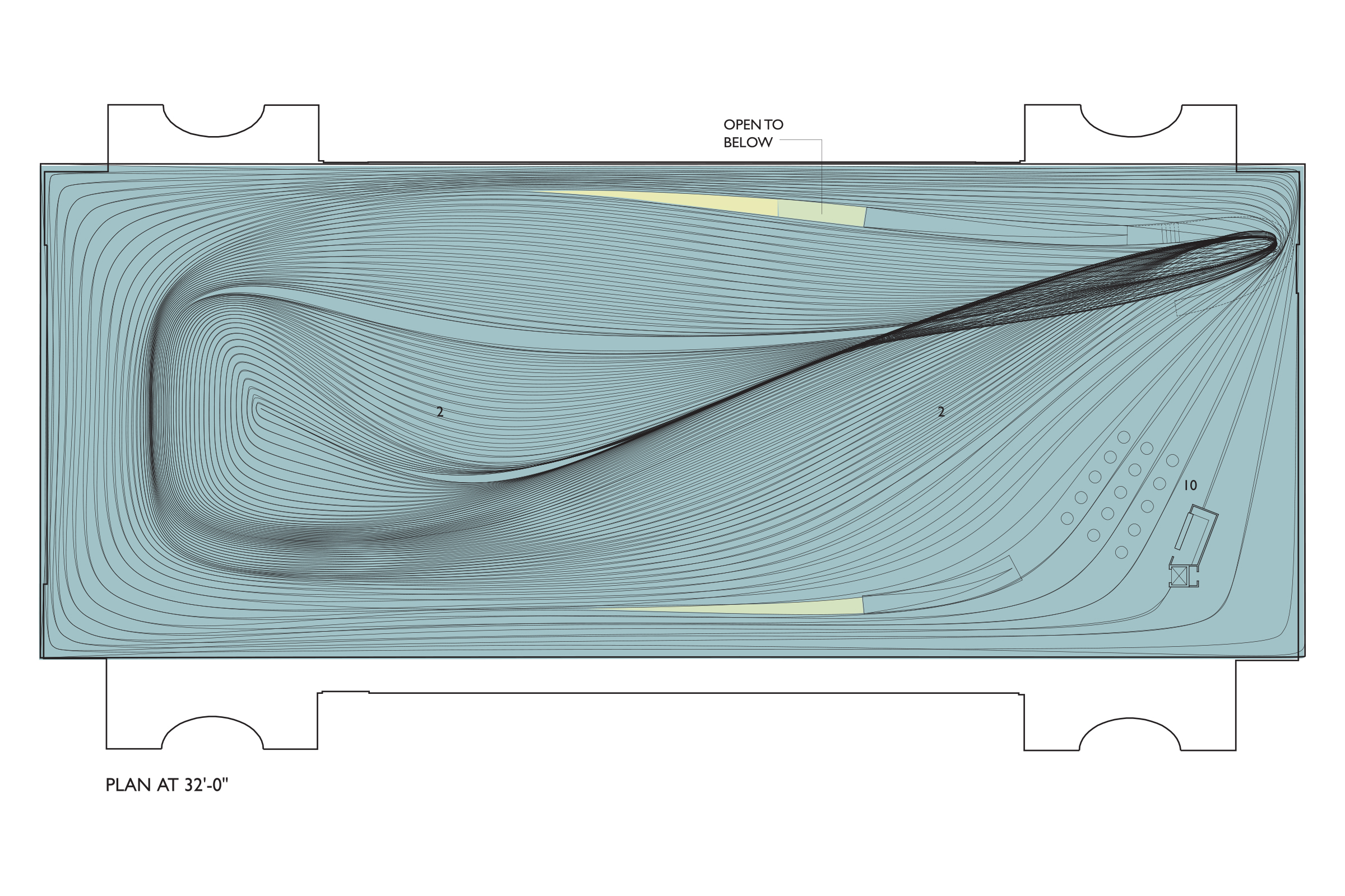 The Queens Museum of Art Expansion provides an extensive infrastructure to promote various forms of public assembly. Gnuform proposed a complex within the existing envelope comprised of a layered set of structures, the spaces and surfaces of which amplify and express the dynamics inherent within large groups of people. In this way, the Museum's infrastructure will draw upon the patterns, rhythms, and formations generated through crowd behavior to create visible yet transitory structures within and around those of the built environment. Exhibition, then, becomes an activity immersed within a larger, more variegated field of intensified public gathering.